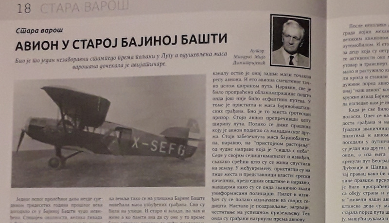 Авион у старој Бајиној Башти Једног лепог пролећног дана негде средином тридесетих година прошлог века догодило се у Бајиној Башти чудо невиђено. Стицајем околности,...
